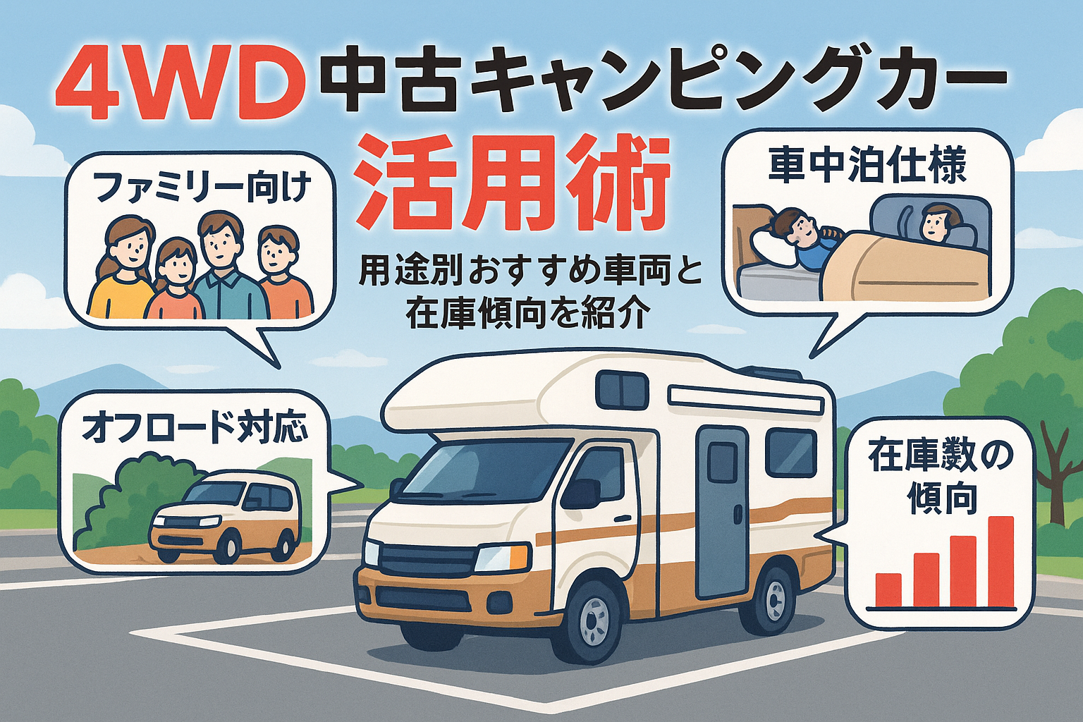 4WDの中古キャンピングカーの活用術!用途別おすすめ車両と在...