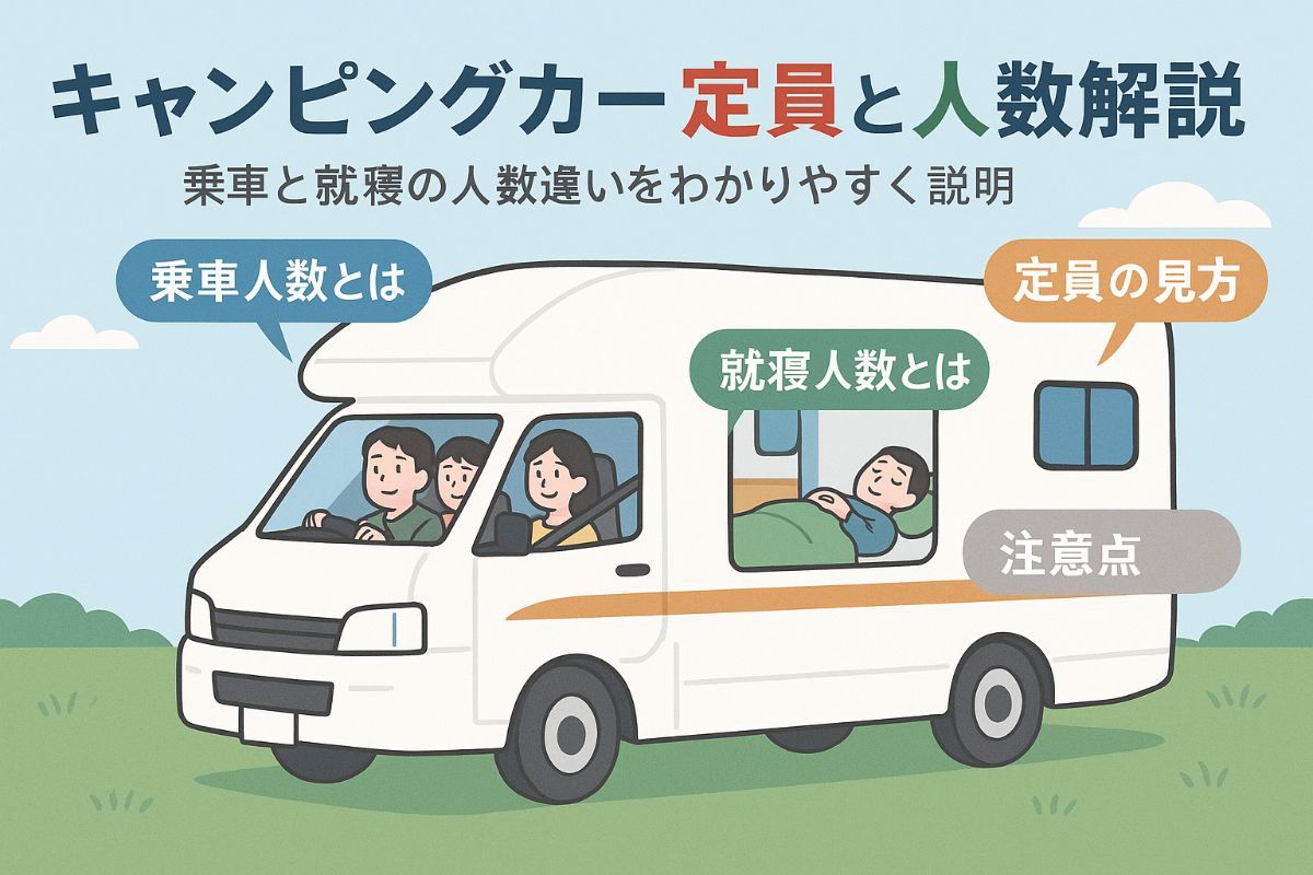 2025/09/07キャンピングカーで旅行を計画するとき、「乗車定員」と「就寝人数」の違いや、家族やグループに最適な面選びに考える方は多いのではないでしょうか。 実は、国... -